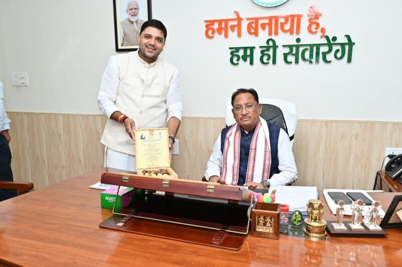 रायपुर। युवा भाजपा नेता अतुल पर्वत ने छत्तीसगढ़ प्रदेश के लोकप्रिय मुख्यमंत्री विष्णु देव साय जी से सौजन्य मुलाकात की,व आशीर्वाद लिया। साथ ही मुख्यमंत्री जी को अपने जन्मदिवस के अवसर पर निमंत्रण कार्ड देकर आमंत्रित किया,इस पर मुख्यमंत्री जी ने अतुल पर्वत को जन्मदिन की अग्रिम बधाई शुभकामनाएं भी दी।अतुल ने जानकारी दी,की छत्तीसगढ़ के लिए यह गौरव का विषय है की विश्व विख्यात पंडित रसराज जी महाराज भारत में जिन्होंने अध्यात्म और धार्मिक संगीत जगत को एक नई पहचान दी।