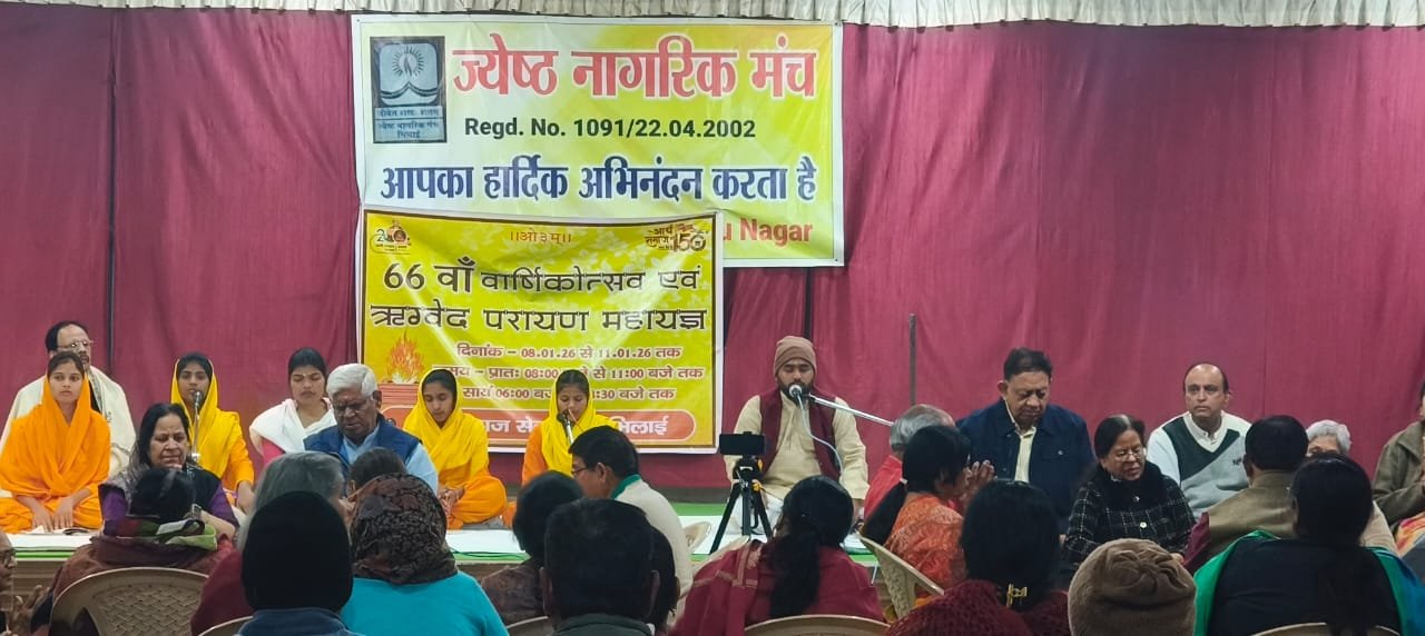 आर्य समाज मंदिर सेक्टर-6, भिलाई में चार दिवसीय वार्षिक उत्सव का शुभारंभ वैदिक परंपराओं के अनुरूप सत्संग, ऋग्वेद पारायण महायज्ञ एवं सुमधुर भजनों के साथ हो गया। 08 से 11 जनवरी 2026 तक चलने वाले इस आयोजन के पहले दिन मंदिर परिसर श्रद्धा, अनुशासन और वैदिक चेतना से ओतप्रोत रहा। कार्यक्रम का प्रारंभ गुरुवार संध्या को सियान सदन, नेहरू नगर से किया गया।