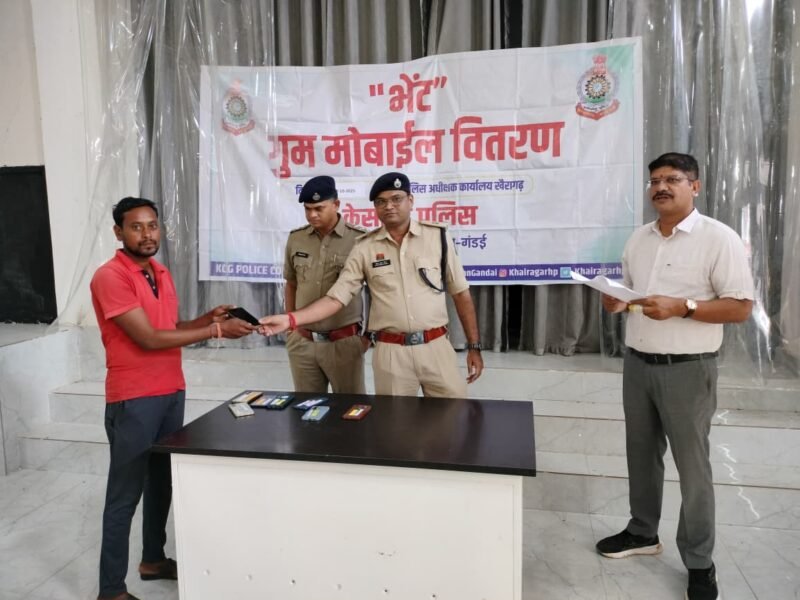 खैरागढ़। दीगर राज्य, दीगर जिला एवं जिला अंतर्गत नक्सल प्रभावित दूरस्थ गांवों से मोबाइल रिकवरी थी चैलेंजींग ।।जिसे जिला केसीजी पुलिस की सायबर टीम ने बेहतरीन तकनीकी प्रयास से महाराष्ट्र, मध्यप्रदेश, उत्तरप्रदेश, उड़ीसा, छत्तीसगढ़ सहित विभिन्न स्थानों से ₹3 लाख मूल्य के 27 गुम मोबाइल फोन बरामद किए।।जिसे मंगलवार 07 अक्टूबर 2025 को पुलिस अधीक्षक कार्यालय में आयोजित “गुम मोबाइल भेंट कार्यक्रम” में 27 मोबाइलों के वास्तविक मालिकों को सौंपे गए।।