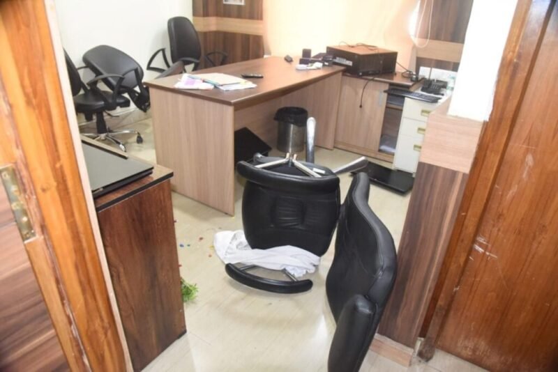 मोबाइल से रिकॉर्डिंग करते हुए घुसे कुछ लोग, की गाली-गलौज और तोड़फोड़