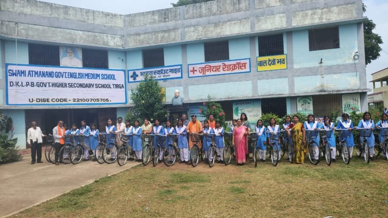 दुर्ग। ग्राम तिरगा स्थित दाऊ स्व. प्यारेलाल बेलचंदन हायर सेकेंडरी स्कूल में आज भगवान श्री विश्वकर्मा जयंती एवं देश के यशस्वी प्रधानमंत्री नरेन्द्र मोदी जी के जन्मदिवस के अवसर पर विशेष कार्यक्रम आयोजित किया गया। इस कार्यक्रम में विद्यालय की छात्राओं को साइकिल वितरण किया गया।