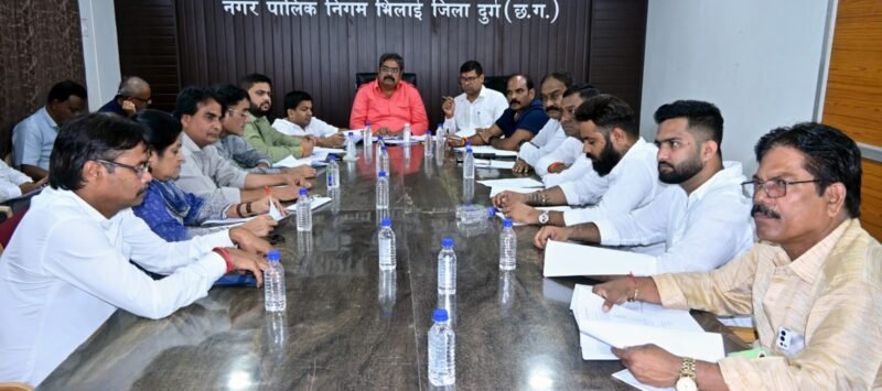 महापौर परिषद की बैठक महापौर परिषद के सदस्य सीजू एन्थोनी, लक्ष्मीपति राजू, संदीप निरंकारी, लालचंद वर्मा, साकेत चंद्राकर, केशव चैबे, एकांश बंछोर, आदित्य सिंह, चंद्रशेखर गंवई, नेहा साहू, मन्नान गफ्फार खान, रीता सिंह गेरा सहित उपायुक्त सह सचिव नरेन्द्र कुमार बंजारे, जोन आयुक्त, कार्यपालन अभियंता, सहायक अभियंता, स्वास्थ्य अधिकारी, लेखाधिकारी, उपअभियंता, एवं अन्य अधिकारी उपस्थित रहे।