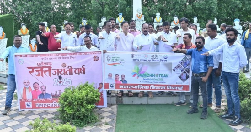 भिलाईनगर। नगर पालिक निगम भिलाई में रजत जयंती एवं स्वच्छता ही सेवा अभियान के तहत महापौर परिषद सदस्य लक्ष्मीपति राजू एवं संदीप निरंकारी की उपस्थिति में नेहरू नगर चौक पर सफाई अभियान चलाया गया। शहर के नागरिको में जन जागरूकता लाने के उद्देश्य से चौक के किनारे शहीदो की मूर्तियों की घुलाई कर माल्यार्पण किया गया। स्मारक के आस-पास झाडू लगाकर सफाई अभियान चलाया गया।