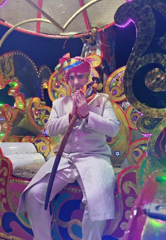 सिविल लाइन स्थित पिता की प्रतिमा और मां दुर्गा की प्रतिमा पर पूजा अर्चना कर निकली शाही सवारी राजा आर्यव्रत की