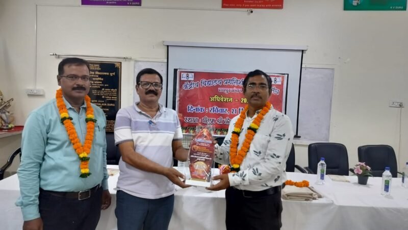 भिलाई,दुर्ग। केंद्रीय विद्यालय प्रगतिशील शिक्षक संघ रायपुर संभाग का वार्षिक अधिवेशन रविवार को दुर्ग में सम्पन्न हुआ। अधिवेशन में संघ का त्रिवार्षिक चुनाव भी हुआ, जिसमें सर्वसम्मति से शैलेंद्र गिरी तीसरी बार अध्यक्ष और डॉ. अजय आर्य महासचिव निर्वाचित हुए। मुख्य अतिथि के रूप में उपस्थित छत्तीसगढ़ शासन के शिक्षा मंत्री गजेन्द्र यादव का स्वागत शॉल, श्रीफल और माला से किया गया। साथ ही, दुर्ग नगर निगम के सभापति श्याम शर्मा का भी अभिनंदन किया गया।
