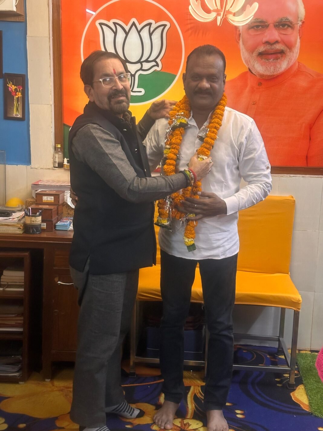 श्रम कल्याण बोर्ड के अध्यक्ष राज्यमंत्री दर्जा प्राप्त योगेश दत्त मिश्रा आज नवनियुक्त जिला भाजपा उपाध्यक्ष चिन्ना केशवलु से मिलने निवास पहुँचे