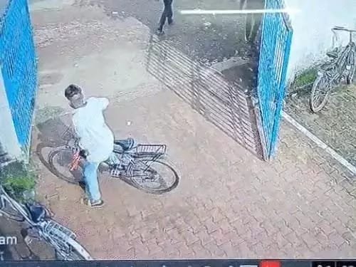 दुर्ग। जिले के एक सरकारी स्कूल में साइकिल चोरी का मामला सामने आया है। ग्राम तितुरडीह में शनिवार (13 सितंबर) को 4 अज्ञात लोग नशे में स्कूल कैंपस में घुसे और एक छात्र की साइकिल उठाकर ले गए। इस घटना का सीसीटीवी भी सामने आया है। मामला शासकीय उच्चतर माध्यमिक विद्यालय का है। नशे में होने के कारण साइकिल ले जाते समय चोर लड़खड़ा रहे थे। चोरी की जानकारी मिलते ही छात्रों ने दौड़कर तीनों आरोपियों को पकड़ लिया और पुलिस के हवाले कर दिया। छात्रों ने बताया कि चोरों ने पैसे भी मांगे थे, नहीं दिया तो साइकिल ले गए। स्कूल के शिक्षक कैलाश बनवासी ने बताया कि शनिवार सुबह पीटी के बाद छात्रों को पांच मिनट के लिए रिलेक्स दिया गया था। इसी दौरान चार संदिग्ध युवक स्कूल कैंपस में पहुंचे।