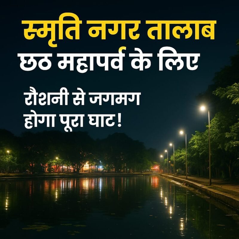 “छठ महापर्व की रौनक बढ़ी — स्मृति नगर तालाब हुआ रोशनी से गुलज़ार!”