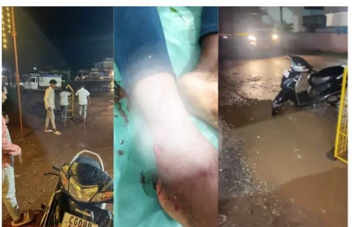 दोपहर लगभग 1 बजे शराब के नशे में एक वाहन चालक ने गड्ढे से बचने की कोशिश कर रहे बाइक सवार को ठोकर मार दी।। हादसे में बाइक सवार गंभीर रूप से घायल हो गया।। उसके पैर की एड़ी के ऊपर की हड्डी बाहर निकल गई।। मौके पर भारी भीड़ जमा हो गई।। पुलिस टीम ने तत्काल घायल को अस्पताल पहुंचाया और हालत गंभीर होने पर उसे राजनांदगांव पेंड्री हॉस्पिटल रेफर किया गया।।