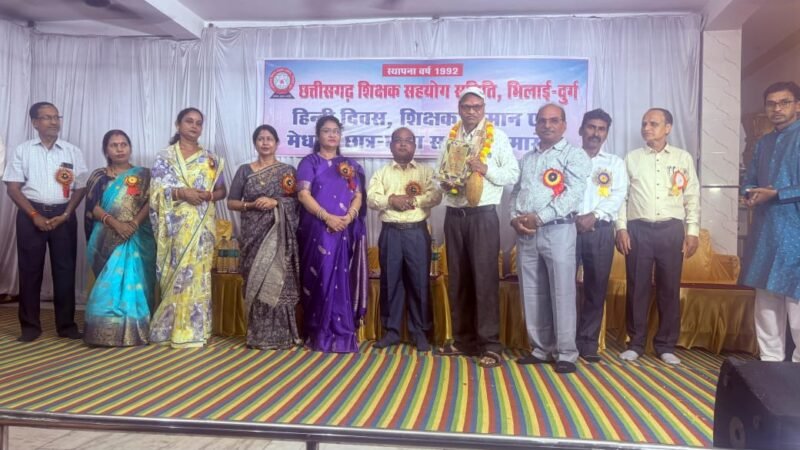 भिलाई,दुर्ग। छत्तीसगढ़ शिक्षक सहयोग समिति भिलाई दुर्ग के तत्वावधान में प्रति वर्ष की भांति इस वर्ष भी हिन्दी दिवस की पूर्व संध्या पर शिक्षक सम्मान समारोह का आयोजन कुर्मी भवन सेक्टर सात भिलाई में संध्या 5 बजे 13 सितंबर दिन शनिवार को आयोजित की गई।
