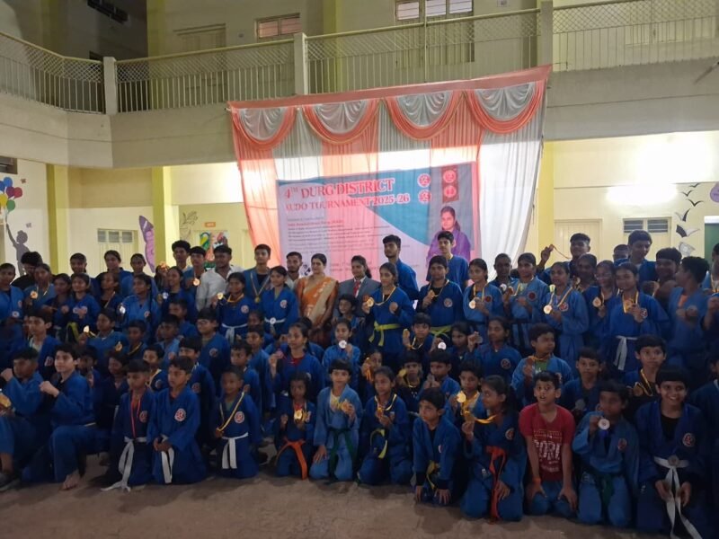 दुर्ग। एकेडमी 360° ऋषभ नगर दुर्ग में 4थी जिला स्तरीय कुडो टूर्नामेंट सम्पन्न हुआ जिसमें धमधा,पाटन और दुर्ग जिले के लगभग 350 से ज्यादा खिलाड़ी, कोच मैनेजर ने हिस्सा लिया जिसमें दुर्ग शहर के खिलाड़ियों ने ओवर आल चैंपियनशिप का खिताब अपने नाम किया द्वितीय स्थान पर धमधा ब्लॉक और तृतीय स्थान पर पाटन ब्लॉक रहा इस प्रतियोगिता में आगामी राज्य स्तरीय टूर्नामेंट के लिए टीम चयन किया गया है। इस कार्यक्रम की मुख्य अतिथि कुडो एसोसिएशन जिला दुर्ग की अध्यक्ष श्रीमती अनुराधा सिंह विशेष अतिथि समाज सेवक आशीष सुराना जी रहें।
