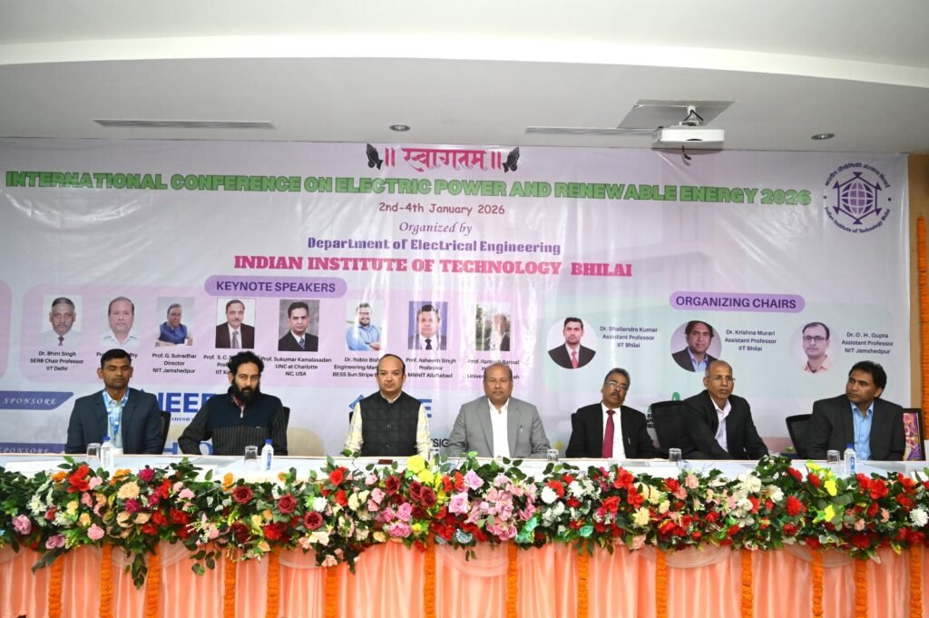 भिलाई। सहयोगात्मक अनुसंधान एवं भारतीय प्रौद्योगिकी संस्थान भिलाई के विद्युत अभियांत्रिकी विभाग द्वारा आज 6वें IEEE अंतरराष्ट्रीय सम्मेलन ऑन इलेक्ट्रिक पावर एंड रिन्यूएबल एनर्जी (EPREC 2026) का शुभारंभ किया गया। IEEE के तत्वावधान में आयोजित यह तीन दिवसीय अंतरराष्ट्रीय सम्मेलन 2 से 4 जनवरी 2026 तक आईआईटी भिलाई में संपन्न हो रहा है। सम्मेलन में देश-विदेश के शिक्षाविद्, शोधकर्ता एवं उद्योग विशेषज्ञ विद्युत शक्ति तथा नवीकरणीय ऊर्जा प्रणालियों में उभरती प्रवृत्तियों और चुनौतियों पर विचार-विमर्श कर रहे हैं।