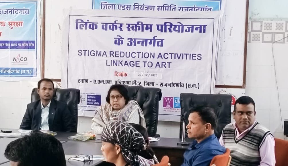 राजनांदगांव। छत्तीसगढ़ राज्य एड्स नियंत्रण समिति रायपुर के सहयोग से जनकल्याण सामाजिक संस्थान राजनांदगांव द्वारा संचालित लिंक वर्कर स्कीम परियोजना के अंतर्गत आज सीएमओ कार्यालय में एचआईवी संक्रमित व्यक्तियों के साथ हो रहे कलंक एवं भेदभाव को दूर करने, उन्हें ART सेंटर से जोड़ने तथा सोशल प्रोटेक्शन योजनाओं की जानकारी देने हेतु जागरूकता कार्यक्रम का आयोजन किया गया।