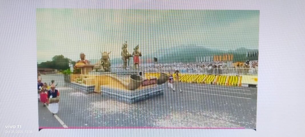 एकता नगर (गुजरात)। गुजरात के एकता नगर में सरदार वल्लभभाई पटेल की 150वीं जयंती के अवसर पर आज आयोजित एकता परेड में इस वर्ष छत्तीसगढ़ की झांकी “बस्तर की धरती – संस्कृति, सृजन और प्रगति की गाथा” ने सभी का मन मोह लिया। यह झांकी छत्तीसगढ़ के जनजातीय जीवन, परंपराओं और विकास यात्रा का जीवंत प्रतीक बनकर उभरी।