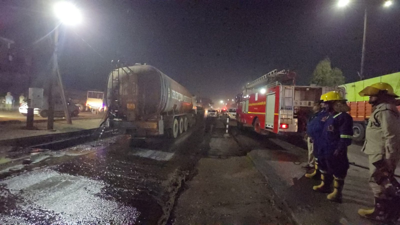 खुर्सीपार गेट के पहले दो ट्रकों का आपसी में टकराव होने के कारण एक ट्रक जो कि टायर बनाने का ऑयल लेकर जा रहा था चेन्नई की ओर जिसमें टकराव होने से ऑयल लीकेज होना चालू हो गया समय पर अग्निशमन कर्मचारियों की 3 दमकल वाहन पहुंचकर लगातार स्टनबाई में रहकर सुरक्षा दृष्टि हेतु रुकी हुई है ताकि आग ना लग सके।
