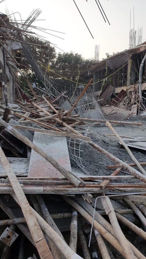 (भिलाई) जुनवानी में अभिषेक मिश्रा मेमोरियल मेडिकल कॉलेज एंड रिसर्च सेंटर परिसर में बन रही नई बिल्डिंग की ढलाई के दौरान पूरा सेंटरिंग अचानक गिर गया। हादसे के समय करीब 25 मजदूर काम कर रहे थे। इसमें 9 लोग घायल हुए, जिनमें से दो की हालत गंभीर बताई जा रही है। सभी घायलों का इलाज शंकराचार्य मेडिकल कॉलेज अस्पताल में किया जा रहा है।