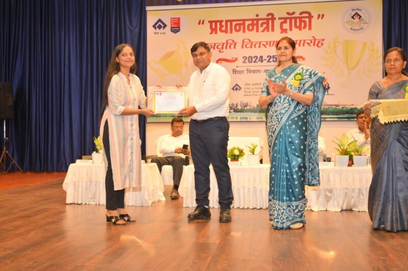 भिलाई। सेल- भिलाई इस्पात संयंत्र के शिक्षा विभाग द्वारा 16 अक्टूबर, 2025 को महात्मा गांधी कला मंदिर, सिविक सेंटर, भिलाई में प्रधानमंत्री ट्रॉफी छात्रवृत्ति पुरस्कार समारोह 2024-25 का आयोजन किया गया। इस अवसर पर भिलाई इस्पात संयंत्र के कर्मचारियों के मेधावी बच्चों को उच्च शिक्षा के लिए प्रधानमंत्री ट्रॉफी सेल मेरिट एवं मेरिट-कम-मीन्स छात्रवृत्ति से सम्मानित किया गया।