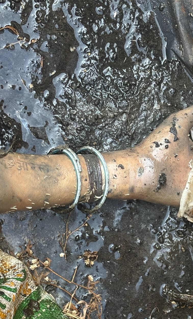 मृतक महिला के हाथ में आरती नाम का गोदना है