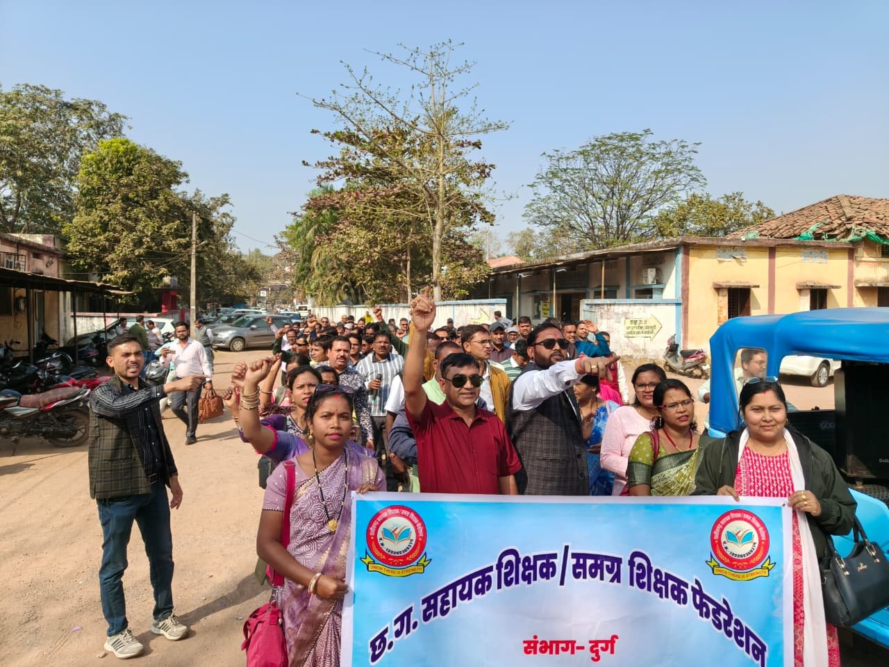 दुर्ग। छत्तीसगढ़ सहायक शिक्षक/समग्र शिक्षक फेडरेशन के बैनर तले आज शिक्षकों ने अपनी लंबित एवं जायज़ मांगों को लेकर जंगी प्रदर्शन किया तथा संयुक्त संचालक शिक्षा कार्यालय, दुर्ग का घेराव किया। बड़ी संख्या में उपस्थित शिक्षकों ने विभाग की उदासीन नीतियों के खिलाफ जोरदार नारेबाजी करते हुए शीघ्र निराकरण की मांग की।