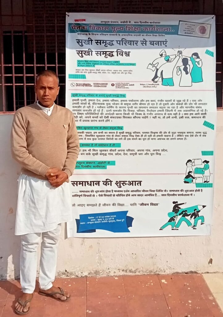 महासमुंद:-मानवीय शिक्षा शोध संस्थान अभ्युदय संस्थान अछोटी और SCERT के तत्वावधान में डाइट और शिक्षा महाविद्यालय के लेक्चरर और प्रिंसिपल के bb सात दिवसीय चेतना विकास मूल्य शिक्षा कार्यशाला का समापन हुआ। समापन सत्र को संबोधित करते हुए कोकड़ी सरकारी स्कूल के शिक्षक गेंदलाल कोकडिया ने जीवन विद्याव चेतना विकास मूल्य शिक्षा से उनमें आये बदलावों को छत्तीसगढ़ स्कूल शिक्षा विभाग के प्रदेश के सभी अधिकारियों को अवगत कराये,साथ ही चेतना विकास मूल्य शिक्षा को पढ़ाने का तौर-तरीका बताये, कोकडिया ने राष्ट्रीय शिक्षा नीति और निपुण भारत मिशन तथा एफ एल एन की सार्थकता और सफलता के चेतना विकास मूल्य शिक्षा का इनके साथ समायोजन को अनिवार्य बताया है, क्योंकि लक्ष्य अच्छा बना लेने से ही मंजिल नहीं मिल पाता,जब तक उसे क्रियान्वित करने का तरीका हमें पता न हो, शिक्षा के महत्व को समझना और जानना सबसे पहली अनिवार्यता है, सभी बच्चों और शिक्षकों का,जो सिर्फ जीवन विद्या अध्ययन से ही संभव हैसमापन पर स्व मूल्यांकन के दौरान अधिकांश प्रतिभागियों ने मध्यस्थ दर्शन के प्रकाश में चेतना विकास मूल्य शिक्षा को स्कूली शिक्षा के लिए अनिवार्य बताया।