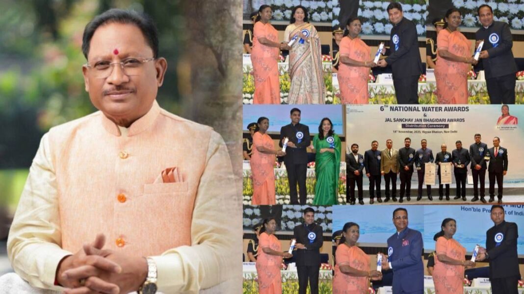 नई दिल्ली– जल संरक्षण के क्षेत्र में उल्लेखनीय कार्य करने पर छठे राष्ट्रीय जल पुरस्कार समारोह में छत्तीसगढ़ को विभिन्न श्रेणियों में तीन राष्ट्रीय जल पुरस्कार से सम्मानित किया गया है। जल संचय, जन भागीदारी श्रेणी में भी छत्तीसगढ़ को उत्कृष्ट राज्य का द्वितीय पुरस्कार प्राप्त हुआ है। वहीं, नगरीय निकाय श्रेणी में रायपुर नगर निगम को प्रथम स्थान मिला है। इसके अलावा पूर्वी जोन के जिलों में विभिन्न श्रेणियों में बालोद, राजनांदगांव, रायपुर, महासमुंद, बलौदाबाजार, गरियाबंद, बिलासपुर एवं रायगढ़ को भी जल संचय, जन भागीदारी अवार्ड से सम्मानित किया गया।