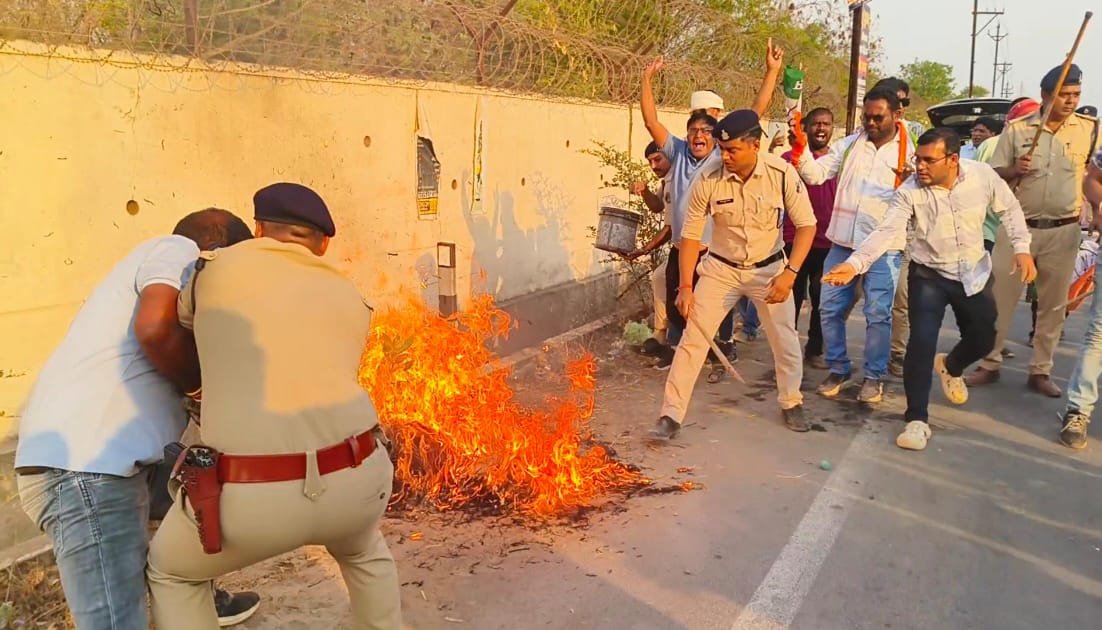 प्रदर्शन के दौरान गृहमंत्री विजय शर्मा का पुतला दहन किया गया। प्रशासन द्वारा संभावित स्थिति को देखते हुए पहले से ही भारी संख्या में पुलिस बल तैनात किया गया था, साथ ही सुरक्षा के कड़े इंतजाम किए गए थे, बावजूद इसके कांग्रेसजन अपने विरोध प्रदर्शन में सफल रहे और पुतला दहन कर सरकार की नीतियों के प्रति अपना तीखा विरोध दर्ज कराया।
