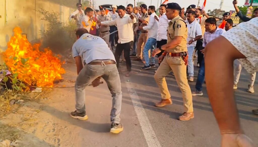 उतई की जघन्य घटना के विरोध में कांग्रेस का उग्र प्रदर्शन, सैकड़ों की उपस्थिति में गृहमंत्री विजय शर्मा का पुतला दहन