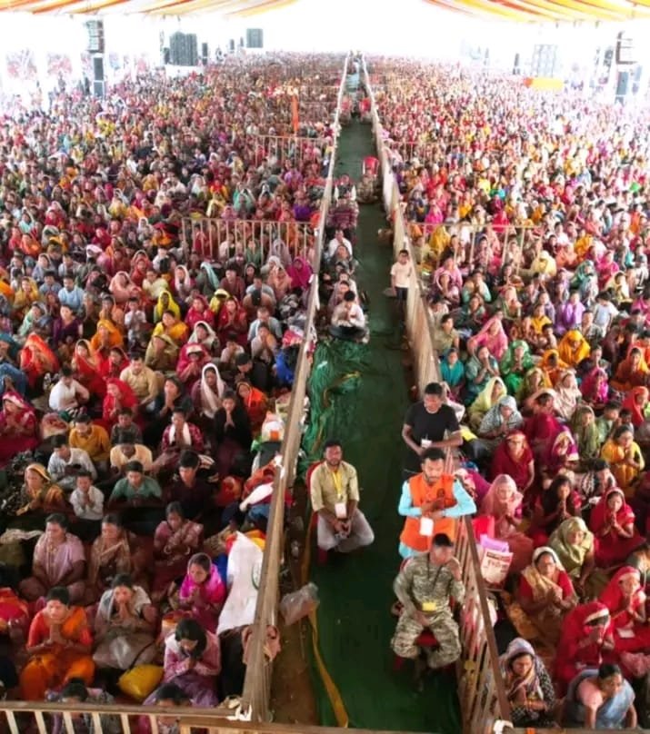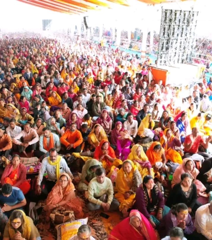कथा सुनने दूर-दराज से पहुंचे श्रद्धालु।
