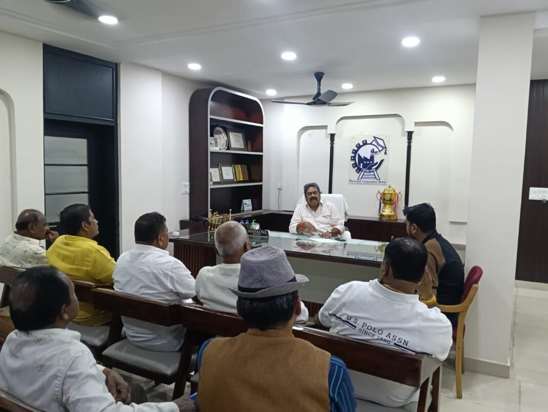 भिलाई। आज शांति नगर के वरिष्ठ नागरिकों ने वरिष्ठ कांग्रेसी नेता बृजमोहन सिंह एवं पार्षद अभिषेक मिश्रा के नेतृत्व में नगर निगम भिलाई के महापौर एवं आयुक्त से मुलाकात कर शांति नगर दशहरा मैदान के संबंध में नागरिकों की भावनाओं से अवगत कराया।