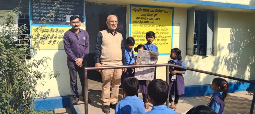 शासकीय प्राथमिक शाला गांधीभांठा अण्डा में प्रार्थना के समय चन्द्रहास साहू सहायक शिक्षक के द्वारा एक छात्र से दैनिक समाचार का वाचन कराया जा रहा था जिसे अन्य छात्र-छात्राओं द्वारा दोहराया जा रहा था। इस गतिविधियों से बच्चों में दैनिक समाचार पत्र पने की आदत के साथ साथ सामान्य ज्ञान की वृद्धि भी हो रही हैं। श्री साहू द्वारा कराई जा रही इस गतिविधि की जिला शिक्षा अधिकारी द्वारा प्रशंसा की गई। शासकीय प्राथमिक/उ.मा.वि. अण्डा के निरीक्षण दौरान सभी स्टाफ उपस्थित पाये गये। 31 दिसम्बर 2025 तक प्राथमिक वर्ग में कक्षा स्तरीय ज्ञान कराये जाने, विद्यालय में स्वच्छता का अभाव पाये जाने पर स्वच्छता बनाये रखने के निर्देश दिये गये है।
