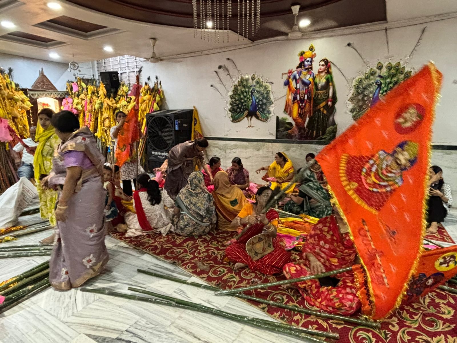 पिछले एक सप्ताह से दुर्गा मंदिर में महिलाएं एवं युवा मिलकर अपने हाथों से तैयार बाबा का निशान तैयार कर रहे है निशान में बाबा का ध्वज, नारियल मोर पंख मोली धागा जैसी विभिन्न सामग्री से एक निशान तैयार हो रहा है सभी के द्वारा ग्यारह सौ से अधिक निशान को तैयारी की गई है,