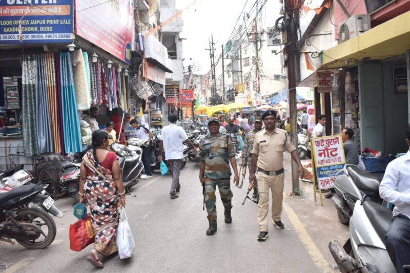 दुर्ग पुलिस ने दीपावली पर सुरक्षा के कड़े प्रबंध किए, बाजारों में तैनात किए हथियारबंद पुलिस बल