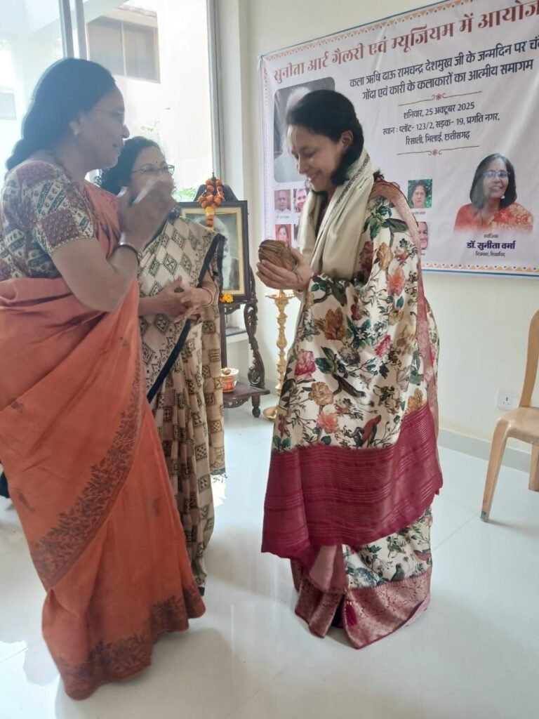 भिलाई। प्रगति नगर रिसाली में स्थित सुनीता आर्ट गैलरी एवं म्यूज़ियम में शनिवार 25 अक्टूबर को छत्तीसगढ़ की लोक सांस्कृतिक चेतना के प्रेरणास्त्रोत कला ऋषि दाऊ रामचंद्र देशमुख जी के जन्मदिवस के उपलक्ष्य में एक गरिमामय सांस्कृतिक एवं कलात्मक समागम का आयोजन हुआ।
