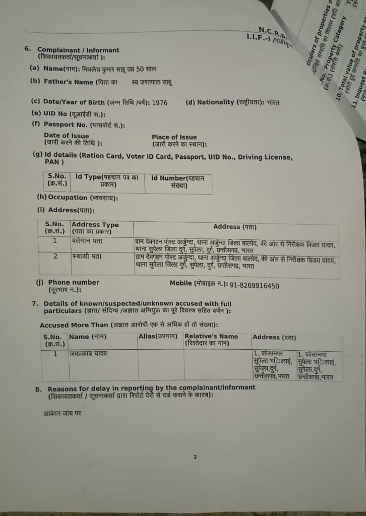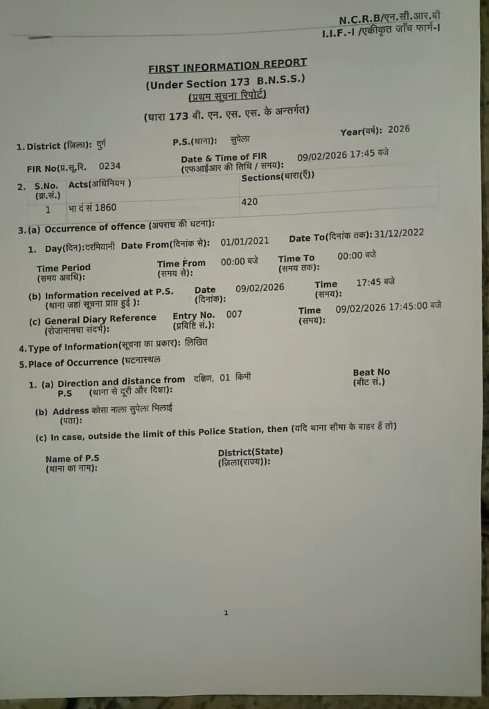 भिलाई नगर। पुस्तैनी जमीन बेंच कर बच्चों की सरकारी नौकरी लगवाने के झांसे में आए बालोद के किसान ने रूपये के लेन-देन और आरोपी से हुई बातचीत के कई डिजिटल साक्ष्य प्रस्तुत कर दुर्ग जिले के सुपेला थाना में एफआईआर दर्ज करवाई है। इस मामले में आरोपी जयप्रकाश यादव निवासी कोसा नगर भिलाई के खिलाफ धारा 420 के तहत अपराध पंजीबद्ध कर पुलिस विवेचना में लिया गया है।