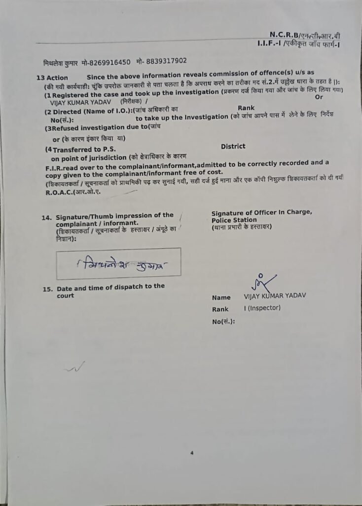 इसी गांव के ओमप्रकाश सिन्हा ने जय प्रकाश यादव से गांव वालों से मिलवाकर जान पहचान करवाया। जय प्रकाश यादव द्वारा मिथलेश और गांव वालों से कहा गया कि उसकी बड़े-बड़े नेता व मंत्री से अच्छी जान पहचान है। मैं तुम्हारे बच्चों को अच्छे पद में नौकरी लगवा सकता हूं। राजनैतिक जान पहचान का हवाला देने से बहकावे में आकर मिथलेश ने जय प्रकाश यादव को अपनी जिविका का एक मात्र साधन पुस्तैनी कृषि भूमि बेचकर एवं केसीसी लोन निकालकर किस्तों में रूपये दिए।