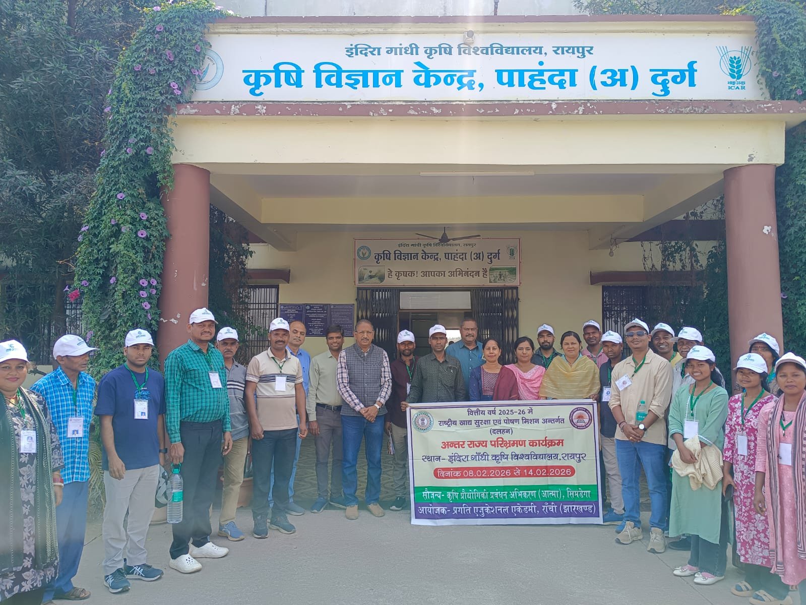 किसानों ने स्थानीय प्रगतिशील कृषकों से सीधा संवाद कर इन तकनीकों से होने वाले आर्थिक लाभ और कम लागत के अनुभवों को साझा किया। इसके पश्चात कृषक दल ने कृषि विज्ञान केंद्र, पाहंदा (अ) का भ्रमण किया। यहाँ वैज्ञानिकों ने उन्हें धनिया, तिवड़ा, चना, सरसों और हल्दी की वैज्ञानिक खेती के गुर सिखाए। किसानों ने विशेष रूप से कम लागत वाली वर्मीकम्पोस्ट तकनीक, बीज उत्पादन और उद्यानिकी नर्सरी प्रबंधन में गहरी रुचि दिखाई। झारखंड के किसानों ने इस भ्रमण को अत्यंत ज्ञानवर्धक बताते हुए कहा कि वे यहाँ सीखी गई तकनीकों को अपने क्षेत्रों में भी लागू करेंगे।