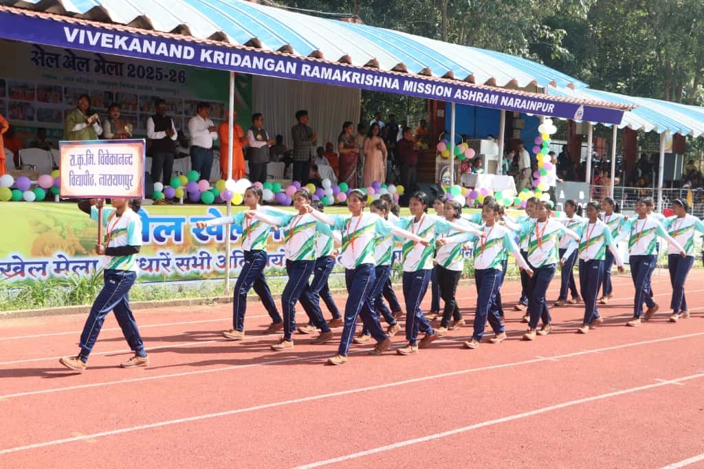 18 नवंबर 2025 को रामकृष्ण मिशन आश्रम के खेल परिसर में आयोजित उद्घाटन समारोह में मुख्य महाप्रबंधक (आई.ओ.सी. राजहरा) आर.बी. गहरवार ने प्रातः 10 बजे दीप प्रज्ज्वलित कर खेल मेले का शुभारंभ किया। कार्यक्रम की अध्यक्षता सचिव, रामकृष्ण मिशन आश्रम, नारायणपुर स्वामी व्याप्तानंद ने की, जबकि मुख्य महाप्रबंधक (रावघाट माइंस) अनुपम बिष्ट, ओलंपियन एवं अर्जुन अवॉर्डी उप महाप्रबंधक (क्रीडा, सांस्कृतिक एवं नागरिक सुविधाएँ) राजेंद्र प्रसाद, पार्षद सुश्री रमशीला नाग तथा नगर के अन्य गणमान्य व्यक्ति अतिथि विशिष्ट के रूप में उपस्थित रहे। प्रारंभ में आयोजित आकर्षक मार्च-पास्ट, खिलाड़ियों द्वारा शपथ ग्रहण तथा रंगारंग सांस्कृतिक प्रस्तुतियों ने मेले के आयोजनों का सूत्रपात किया।