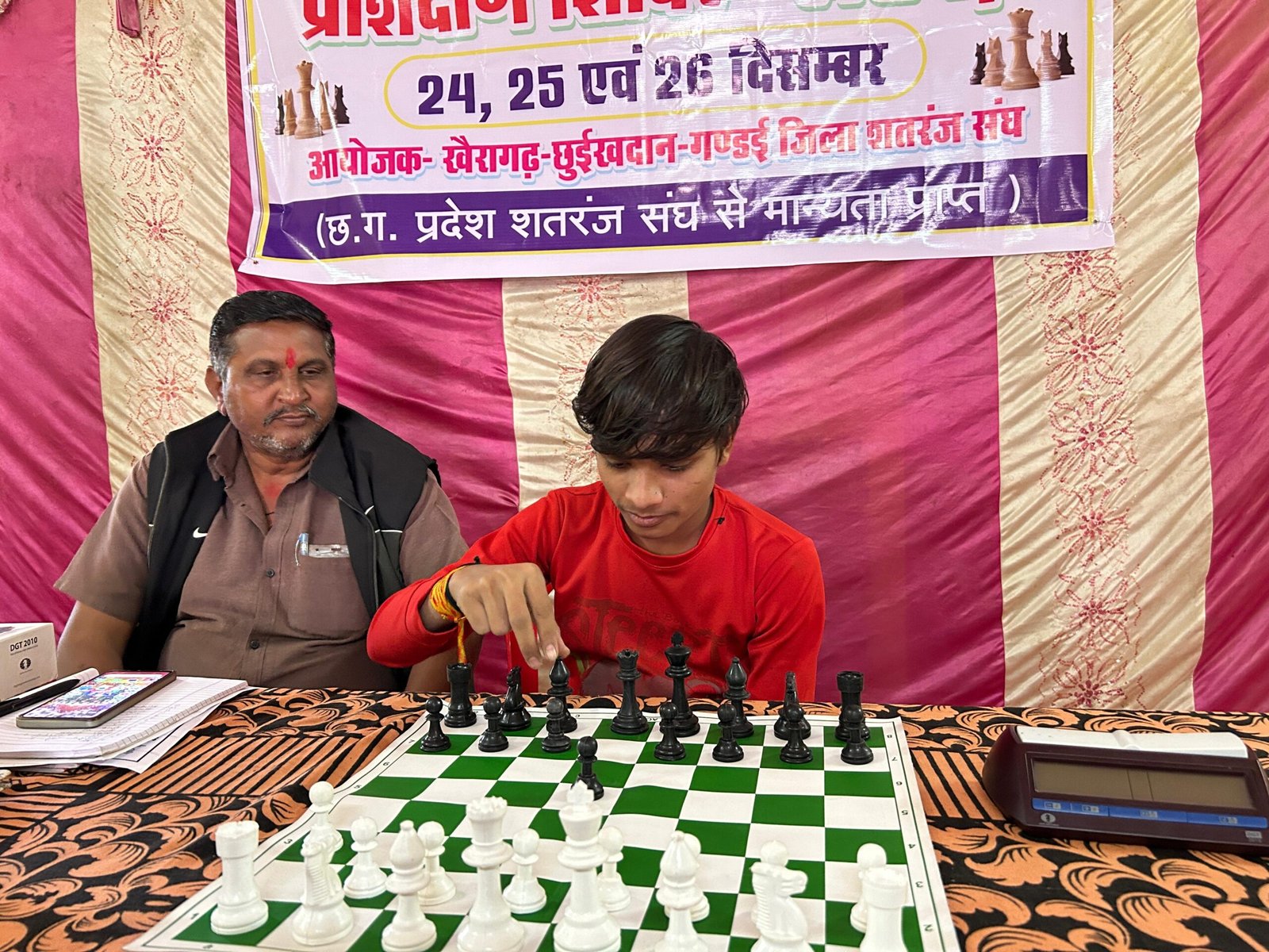 शिविर के पहले दिन बड़ी संख्या में बालक-बालिकाओं एवं युवा खिलाड़ियों ने भाग लिया इस प्रशिक्षण शिविर का उद्देश्य प्रतिभागियों को शतरंज की बारीक तकनीकों, रणनीतियों तथा मानसिक एकाग्रता का व्यावहारिक प्रशिक्षण प्रदान करना है।। शतरंज प्रशिक्षण शिविर का उद्घाटन जिला शतरंज संघ के पदाधिकारियों द्वारा किया गया।। जिसमे खैरागढ़- छुईखदान-गंडई जिला शतरंज संघ के अध्यक्ष सद्दाम हुसैन, उपाध्यक्ष यतेंद्र जीत सिंह “छोटू”, सचिव रॉकी देवांगन एवं कोषाध्यक्ष शेख जहीद उपास्थित रहे।।