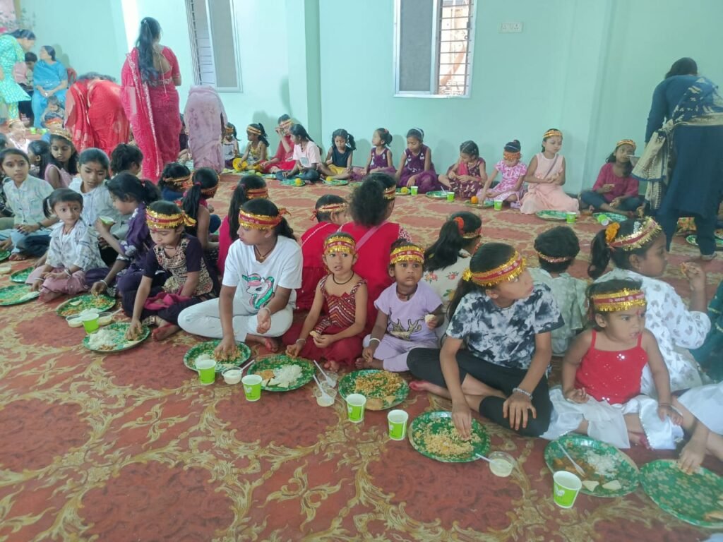 कार्यक्रम में नौ कन्याओं का पारंपरिक विधि-विधान से पूजन और आरती किया गया। कन्याओं को भोज कराया गया। माता तुल्य कन्याओं को उपहार का भी वितरण किया गया।
