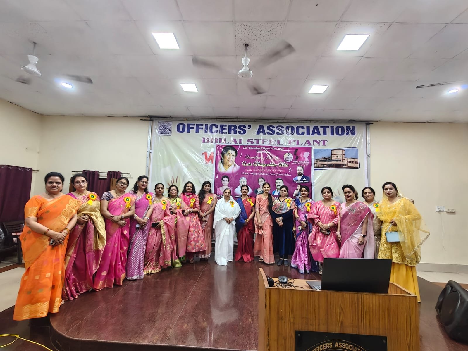 भिलाई नगर। सांगीतिक संस्था सुर संगीत संगम मेलोडी मेकर्स एवं ऑफिसर्स एसोसिएशन भिलाई इस्पात संयंत्र के संयुक्त तत्वावधान में 115वें अंतर्राष्ट्रीय महिला दिवस के उपलक्ष्य में रविवार, 1 मार्च की सायं प्रगति भवन, सिविक सेंटर, भिलाई में एक गरिमामय एवं भव्य सांगीतिक संध्या “लता मंगेशकर नाईट” का सफल आयोजन किया गया।