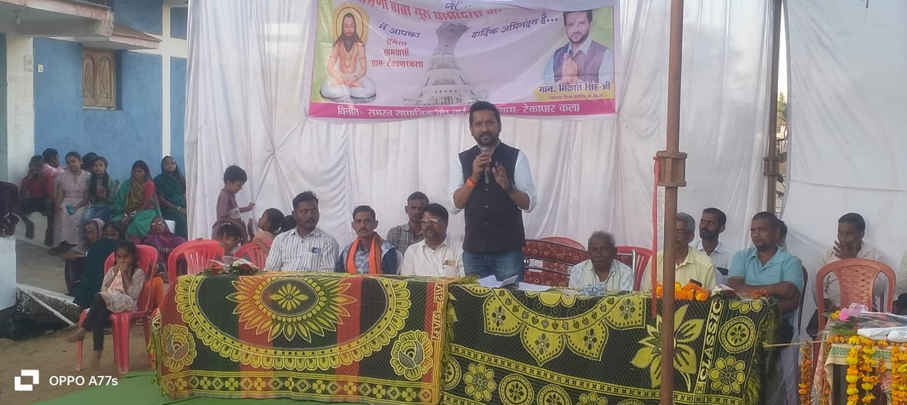 कार्यक्रम की शुरुआत संत शिरोमणि गुरुघासीदास के तैलचित्र पर माल्यार्पण एवं दीप प्रज्वलन के साथ की गई।। इसके पश्चात उपस्थित अतिथियों ने संत गुरुघासीदास के विचारों एवं उनके सामाजिक योगदान पर प्रकाश डाला।। वक्ताओं ने सत्य, अहिंसा, समानता और मानवता के मार्ग पर चलने का संदेश दिया।। मुख्य अतिथि विक्रांत सिंह ने अपने संबोधन में कहा कि संत गुरुघासीदास जी ने समाज को मनखे-मनखे एक समान का संदेश देकर सामाजिक समरसता की मजबूत नींव रखी।। उन्होंने कहा कि संत के बताए मार्ग पर चलकर ही समाज में भाईचारा, समानता और शांति स्थापित की जा सकती है।। उन्होंने युवाओं से संत गुरुघासीदास जी के विचारों को आत्मसात करने की अपील की।। कार्यक्रम के दौरान सांस्कृतिक प्रस्तुतियां भी दी गईं, जिनमें भजन एवं गीत के माध्यम से संत गुरुघासीदास के जीवन दर्शन को दर्शाया गया।। ग्रामीणों ने कार्यक्रम की सराहना करते हुए इसे प्रेरणादायक बताया।।
