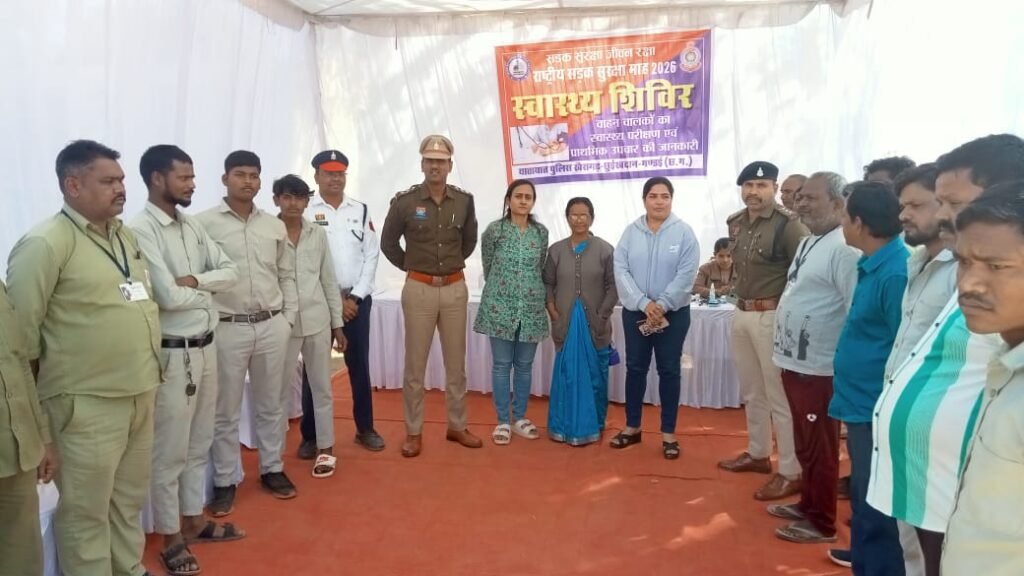 खैरागढ़ : जिला पुलिस केसीजी द्वारा सड़क सुरक्षा माह 2026 को सफल बनाने सड़क दुर्घटनाओ को रोकने यातायात जागरूकता के तहत पुलिस विभाग व स्वास्थ्य विभाग के तत्वाधान मे स्कूली बस,वेन, ऑटो चालकों का राजा फतेहसिंह सिंह खेल मैदान मे व्यापक स्तर पर स्वास्थ्य जाँच शिविर का आयोजन किया गया।।