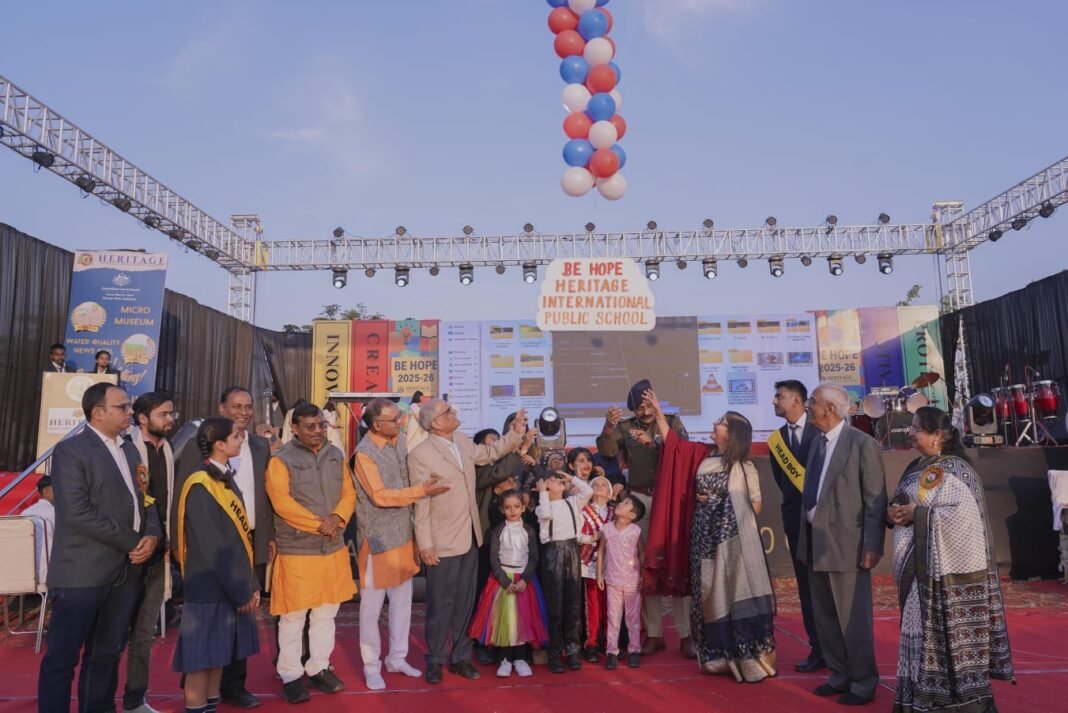 भिलाई। हेरिटेज इंटरनेशनल पब्लिक स्कूल दुर्ग के प्रांगण में ” बी होप ” विषय पर आधारित वार्षिक समारोह का शुभारंभ मुख्य अतिथि डाॅ के सुब्रमण्यम (छत्तीसगढ़ राज्य निति आयोग के सदस्य), विशिष्ट अतिथि सत्य प्रकाश तिवारी ( सिटी एसपी, भिलाई ) प्रधानाचार्या दीप्ति तिवारी, निर्देशक बृजमोहन उपाध्याय, संयुक्त सचिव उमाकांत मिश्रा द्वारा दीप प्रज्वलन से हुआ।