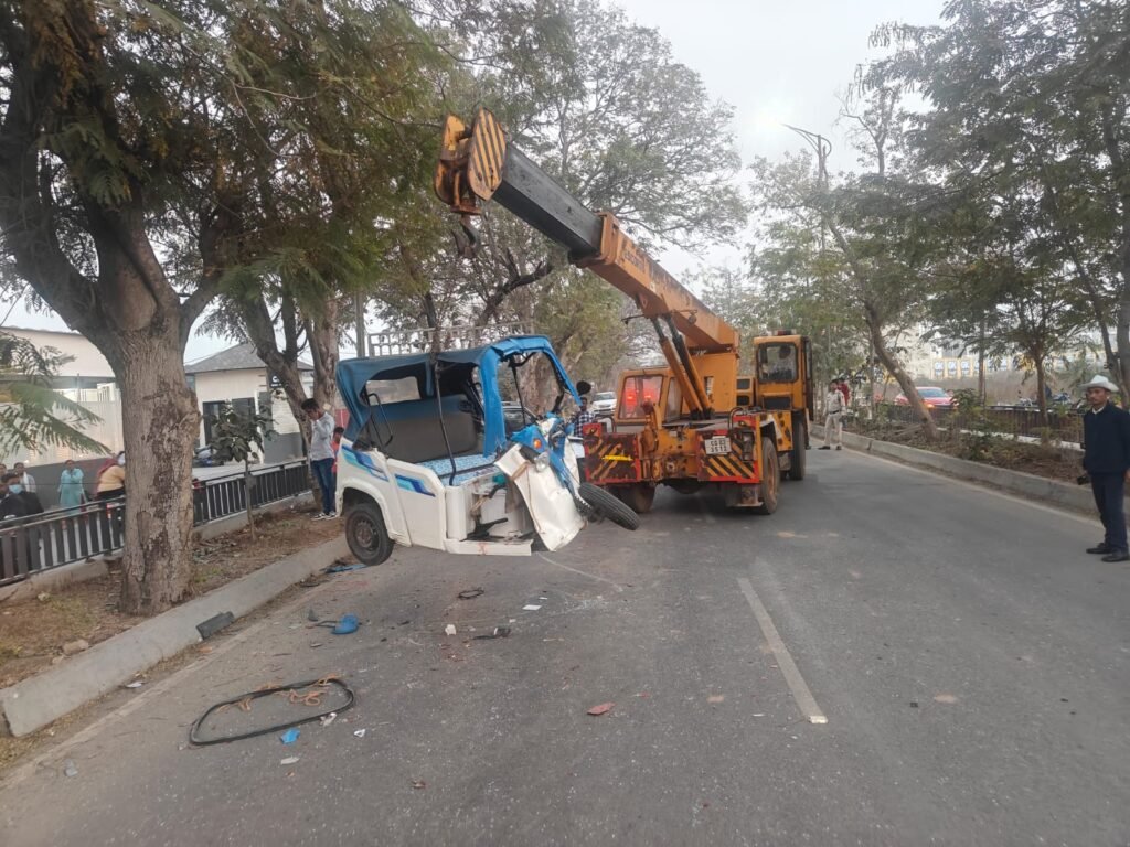 रायपुर। राजधानी रायपुर में नए साल के पहले ही दिन एक दिल दहला देने वाला सड़क हादसा सामने आया है। तेलीबांधा थाना क्षेत्र के अंतर्गत वीआईपी रोड पर तेज रफ्तार का कहर देखने को मिला, जहां एक बेकाबू बोलेरो कार ने पहले स्विफ्ट डिजायर को टक्कर मारी और फिर सामने से आ रहे ई-रिक्शा को जोरदार टक्कर मार दी। इस भयावह दुर्घटना में ई-रिक्शा चालक का एक पैर कटकर अलग हो गया, जिससे इलाके में हड़कंप मच गया।