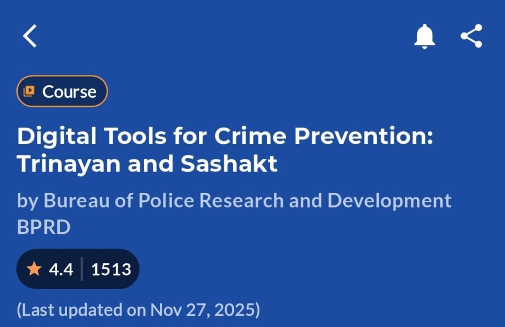 भिलाई। ब्यूरो ऑफ पुलिस रिसर्च एंड डेवलपमेंट (BPR&D) द्वारा “Digital Tools for Crime Prevention: Trinayan and Sashakt” नामक ऑनलाइन प्रशिक्षण पाठ्यक्रम को ‘IGOT Karmayogi’ प्लेटफार्म पर शुरू किया गया है। यह पाठ्यक्रम दुर्ग रेंज पुलिस के तकनीकी नवाचारों पर आधारित है।