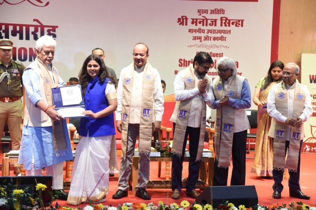 दुर्ग। भारतीय प्रौद्योगिकी संस्थान (आईआईटी) भिलाई का पांचवां दीक्षांत समारोह सोमवार, 10 नवम्बर 2025 को परिसर स्थित नालंदा हॉल में आयोजित किया गया। इस समारोह में जम्मू और कश्मीर के माननीय उपराज्यपाल मनोज सिन्हा कार्यक्रम के मुख्य अतिथि रहे। इस कार्यक्रम में अदाणी सीमेंट के पूर्णकालिक निदेशक एवं सीईओ श्री विनोद बाहेती विशेष अतिथि और डॉ. सुरेश हवारे गेस्ट ऑफ ऑनर थे। आईआईटी भिलाई के बोर्ड ऑफ गवर्नर्स के अध्यक्ष ने समारोह की अध्यक्षता की।
