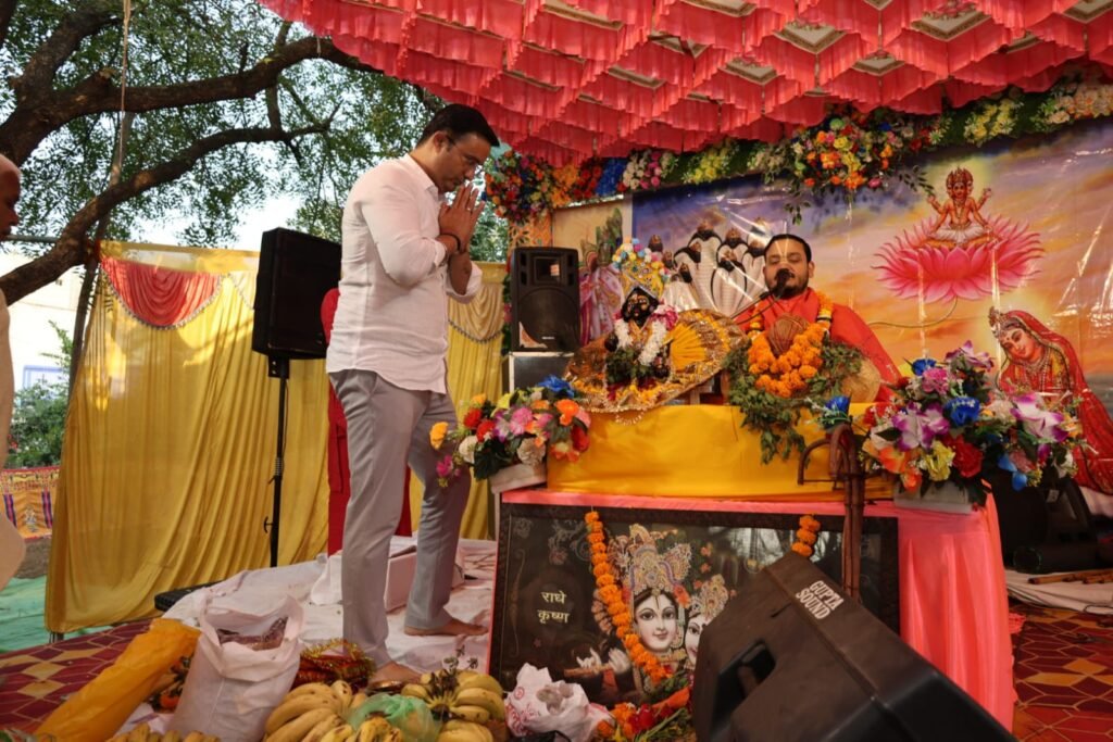 श्रीमद भागवत कथा में पहुँचे इंद्रजीत सिंह ‘छोटू’, भक्तों संग किया दिव्य कथा का श्रवण..