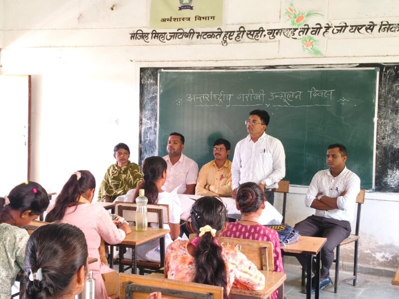 खैरागढ़: रानी रश्मि देवी सिंह शासकीय महाविद्यालय खैरागढ़ प्राचार्य डाॅ. ओ पी गुप्ता एवं वरिष्ठ सहायक प्राध्यापक डॉ जितेंद्र कुमार सांखरे के मार्गदर्शन में “अंतरराष्ट्रीय गरीबी उन्मूलन दिवस” मनाया गया।।अर्थशास्त्र विभागाध्यक्ष सतीश माहला ने गरीबी से निकलने के बहुत सारे उपायों को बताते हुए, उन पर अमल लाने की बात कही।।