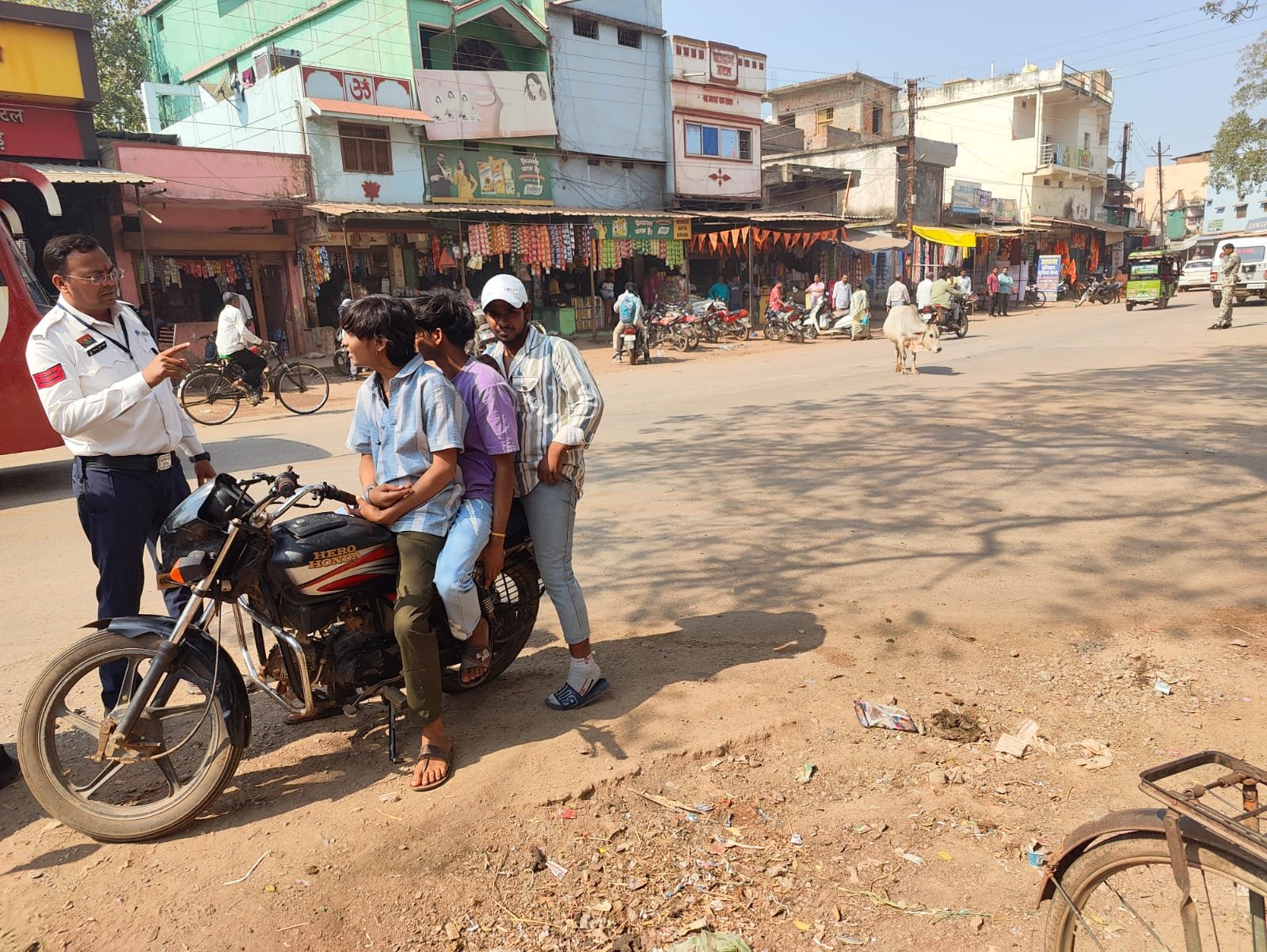 आम जन की जान माल सुरक्षित रहे इस उद्देश्य से शहर सहित शहर के बाहर भी अलग अलग चौक -चौराहो पर आकस्मिक सघन वाहन चेकिंग पॉइंट लगाकर तीन सवारी मोटर सायकल चलाने वालो के विरुद्ध मोटर अधिनियम के तहत चालकों पर चालानी कार्यवाही की जा रही है, व कार्यवाही के साथ ही समझाइस देकर दोपहिया वाहन मे तीन सवारी न चलने व दोपहिया वाहन मे तीन सवारी से सड़क दुर्घटना से नुकसान के संबंध मे बताकर जागरूकता लाने समस्त प्रकार के वाहनों मे -01. अप्रैल 2019 के पूर्व के वाहनों मे एच एस आर पी नंबर प्लेट अनिवार्य रूप से लगाने समझाइस देकर जागरूक किया,यातायात नियमों के पालनकर्ताओ को प्रोत्साहित एवं नियमों के उलंघनकर्ताओ पर प्रभावी कार्यवाही निरंतर जारी रहेगा।।