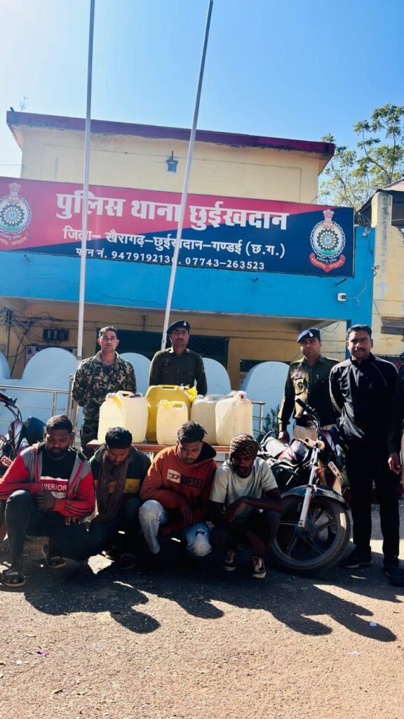 खैरागढ़ : अपराधों पर अंकुश लगाने छुईखदान पुलिस के द्वारा जारी मुहिम के दौरान मुखबिर की सूचना पर घटना स्थल भेलवाघाट विक्रमपुर मार्ग ग्राम बुढानभाठ में रेड कार्यवाही किया गया ।। आरोपीगण 01. हिरेन्द्र यादव पिता हेमलाल यादव उम्र 22 साल, 02. खिलेश यादव पिता रामलखन यादव उम्र 23 साल साकिनान ग्राम विक्रमपुर थाना छुईखदान जिला केसीजी (छ0ग0) के कब्जे से 50 बल्क लीटर हाथ भट्ठी कच्ची महुआ शराब किमती 10000/ रूपये एवं मोटर सायकल क्र0 सीजी 08 जेड 5973 किमती 35000/ रूपये कुल कीमती 45000/ रूपये जप्त कर कब्जा पुलिस लिया। आरोपीगण हिरेन्द्र यादव एवं खिलेश यादव के विरूध्द अपराध क्रमांक 13/2026 धारा 34(2) आबकारी एक्ट के तहत कार्यवाही किया गया।